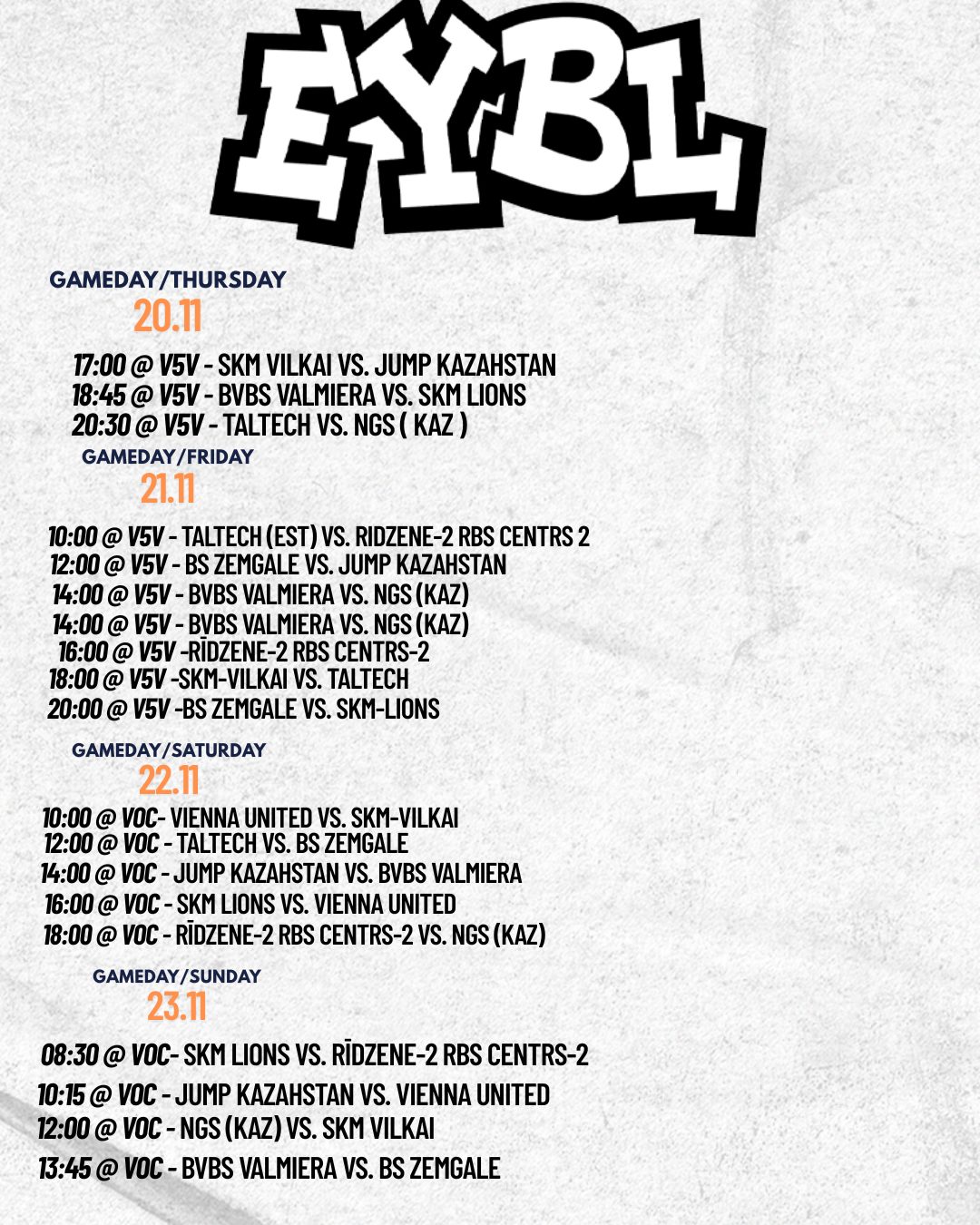 No 2025. gada 20. līdz 23. novembrim Valmierā notiks Eiropas jaunatnes basketbola līgas (EYBL) U13 vecuma grupas turnīru zēniem. Sacensības norisināsies Valmieras Olimpiskajā centrā un Valmieras 5. vidusskolas sporta zālē, pulcējot vairākas komandas no Latvijas, Kazahstānas, Austrijas, Igaunijas un Lietuvas.