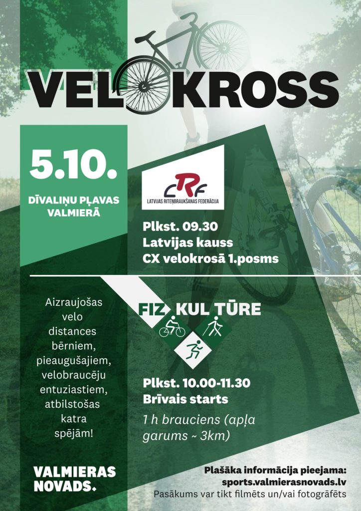 5. oktobrī Valmierā, Dīvaliņa pļavā tiks dots starts jaunam Latvijas kausa CX velokrosā seriālam, kas pirmo reizi apvienos piecus rudens posmus dažādās Latvijas pilsētās – Valmierā, Dobelē, Smiltenē, Kuldīgā un Salaspilī. Finālposms vienlaikus būs arī Latvijas čempionāts.