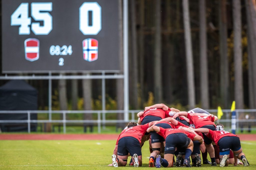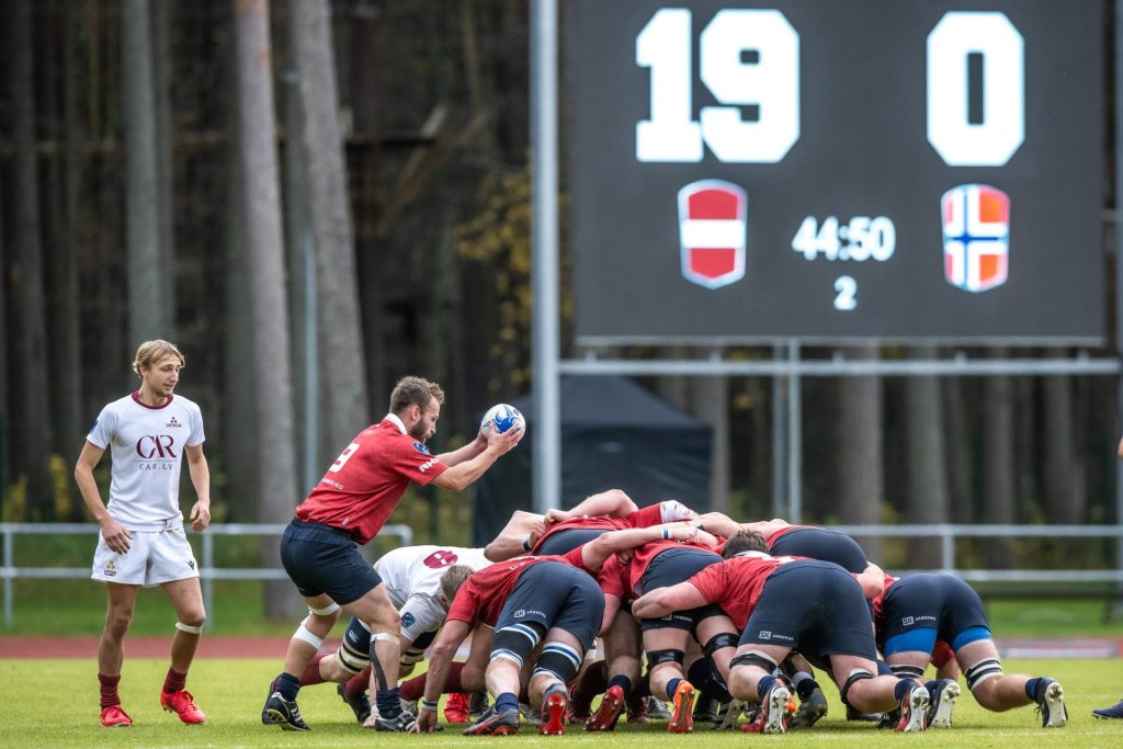 Latvijas regbija XV izlase sestdien, 1. novembrī, Valmierā “Rugby Europe” Konferences divīzijas otrajā spēlē pārliecinoši ar 59-7 (19-0) pieveica Norvēģiju, tiekot pie pirmās uzvaras šajā ciklā.